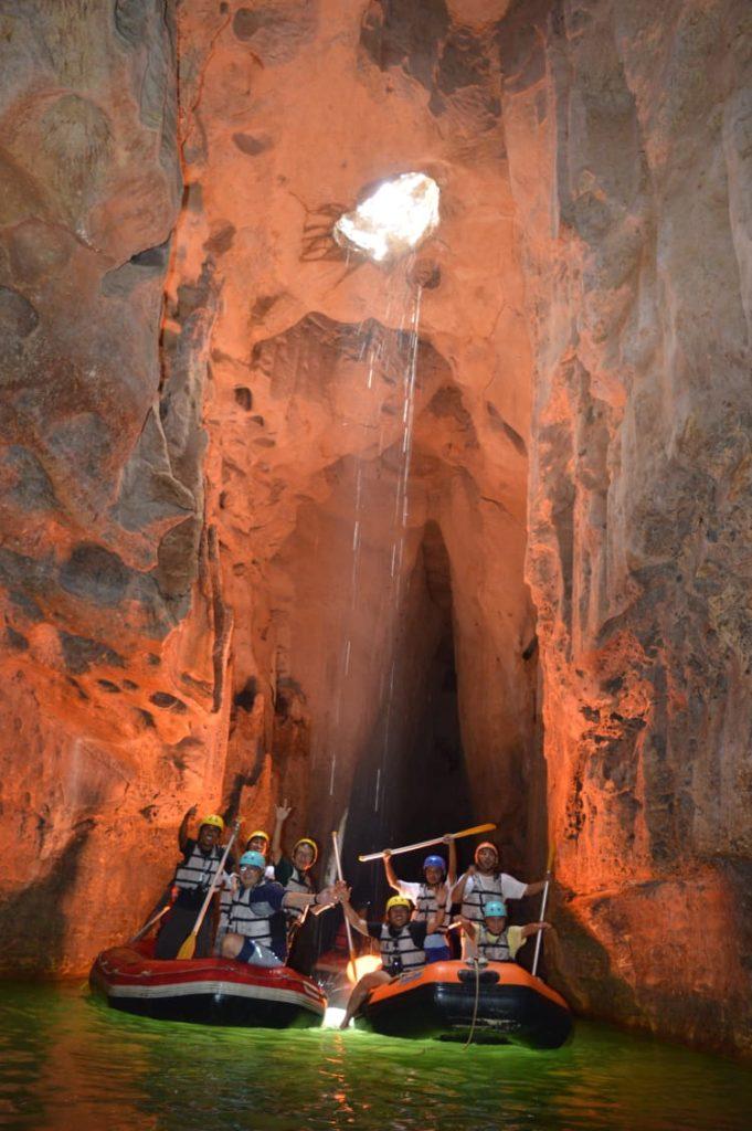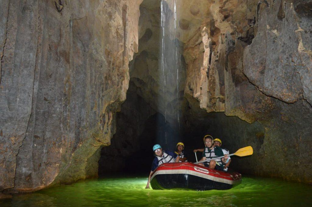 Petualangan ini tidak hanya sekadar menelusuri sungai biasa, tetapi juga menghadirkan tantangan dan kegembiraan saat mengarungi sungai yang mengalir di dalam goa.